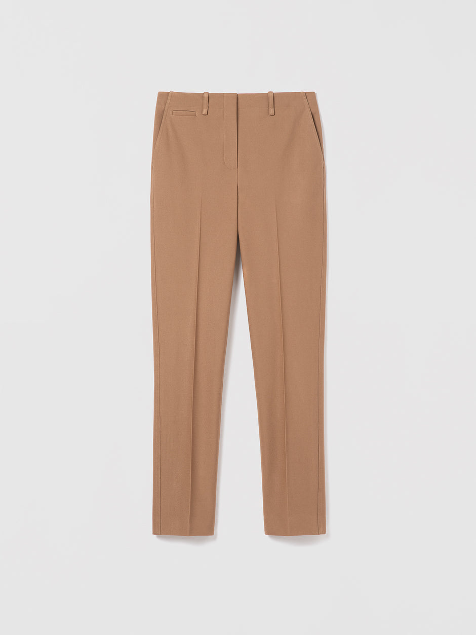 Pantalon slim à cheville avec taille mi-haute. Entièrement doublé. Confectionné dans un mélange viscose–coton.