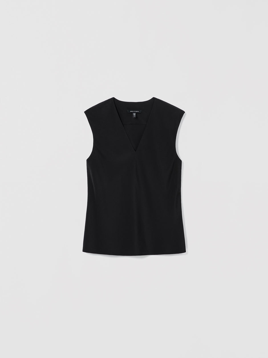 Une blouse à manches cap en crêpe de Chine de soie, dotée d’un V épuré et d’une coupe fluide.