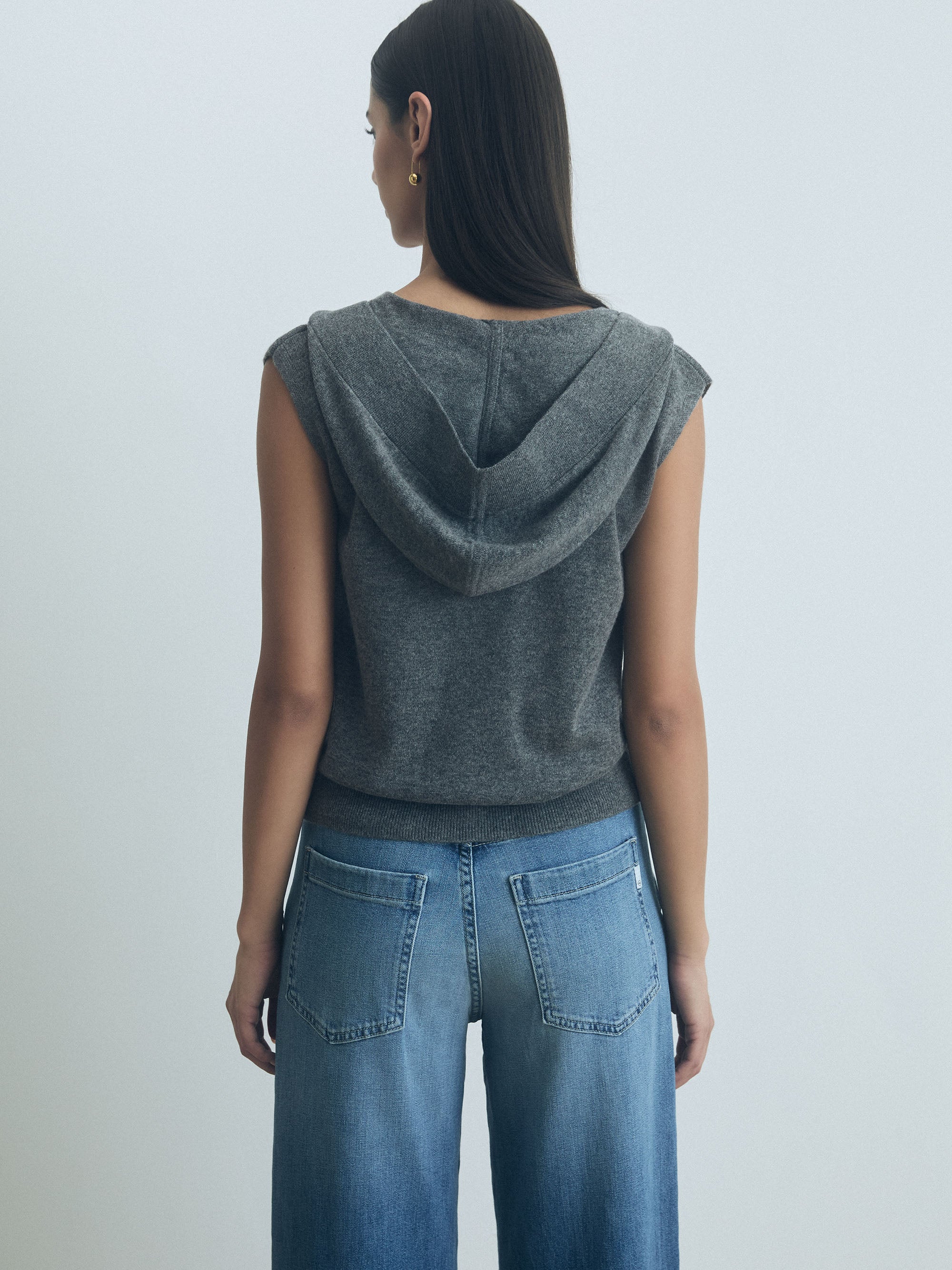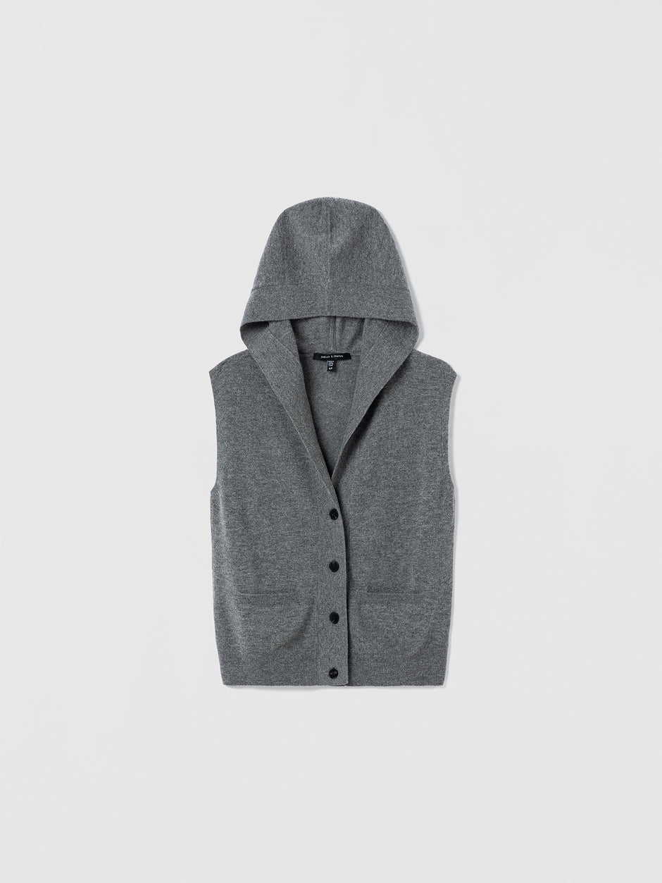 Gilet sans manches à capuche en mélange doux de laine et cachemire avec fermeture à boutons sur le devant