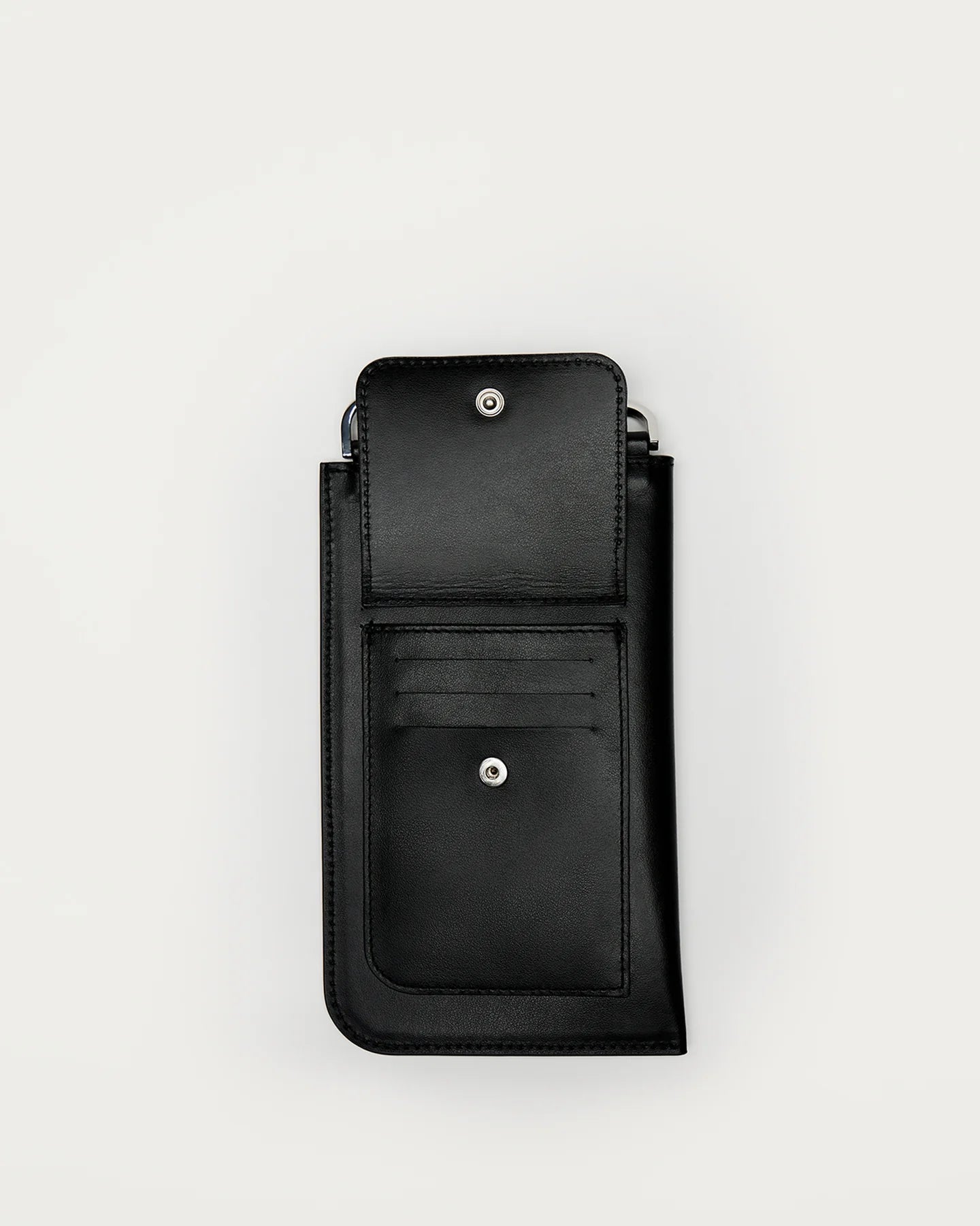 Straddling the line between a bag and a clutch, this smooth leather accessory serves as the ideal case for your phone, ensuring it stays close to you at all times. The three dedicated card slots provide a secure place for your most important cards. With a detachable crossbody strap, you have the flexibility to carry it in the manner that suits you best.