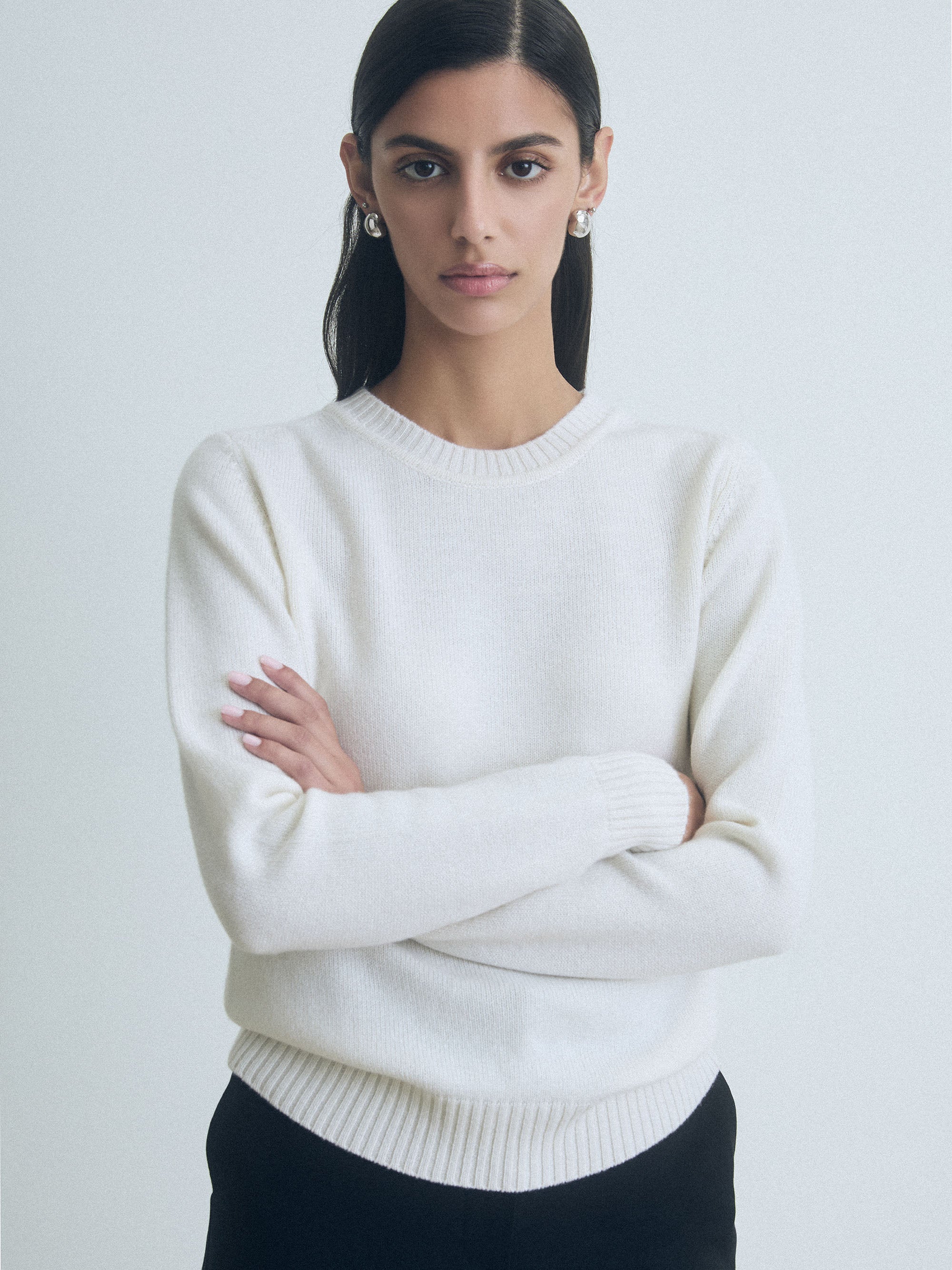 Cashmere crewneck sweater with a straight fit and smooth finish.