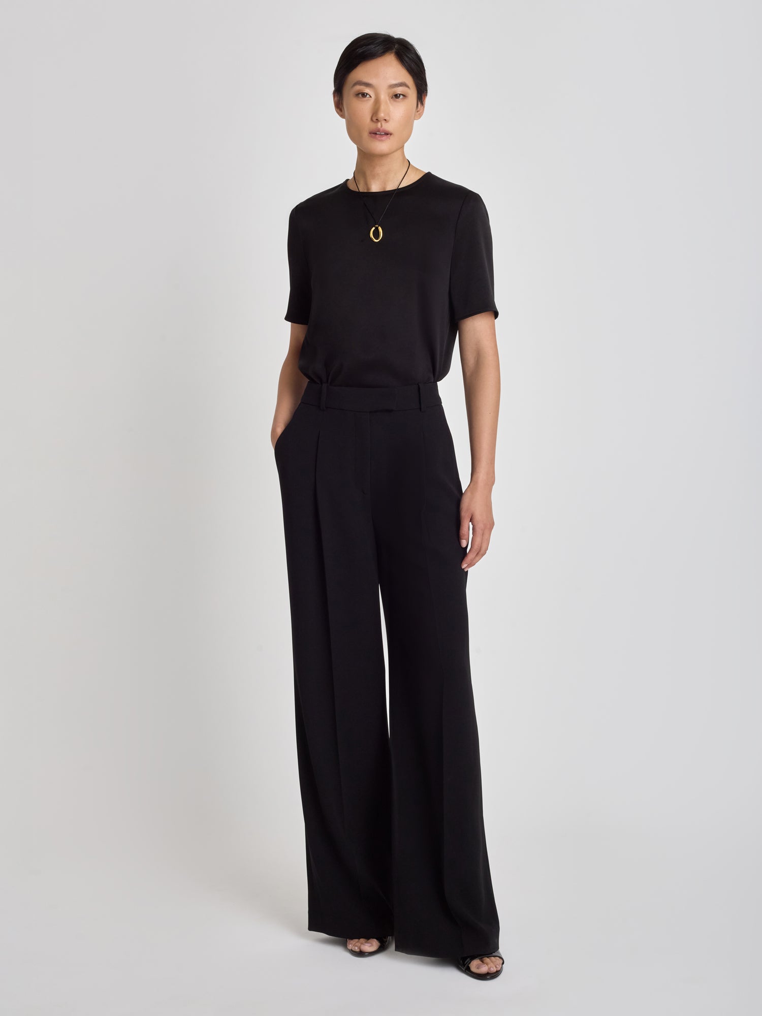 Wide-leg pants in satin back crepe with a mid-rise fit and fluid drape.