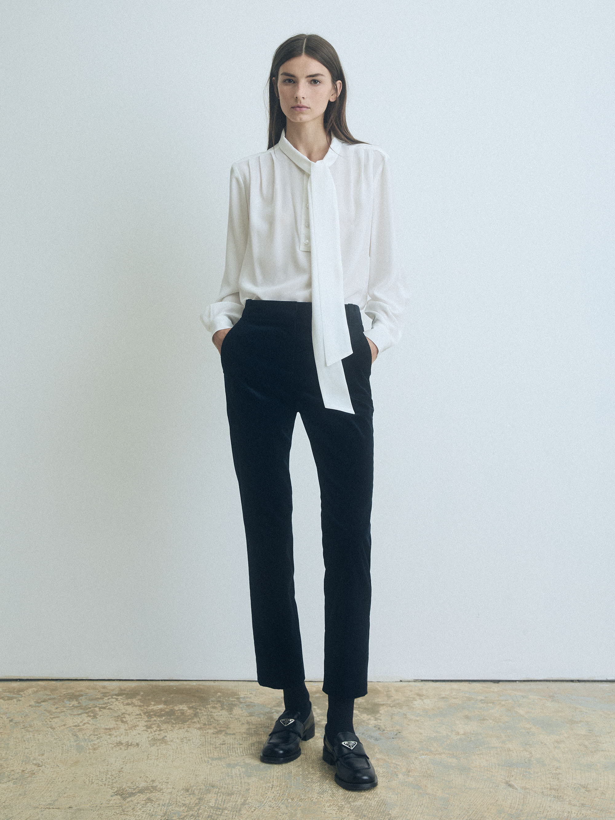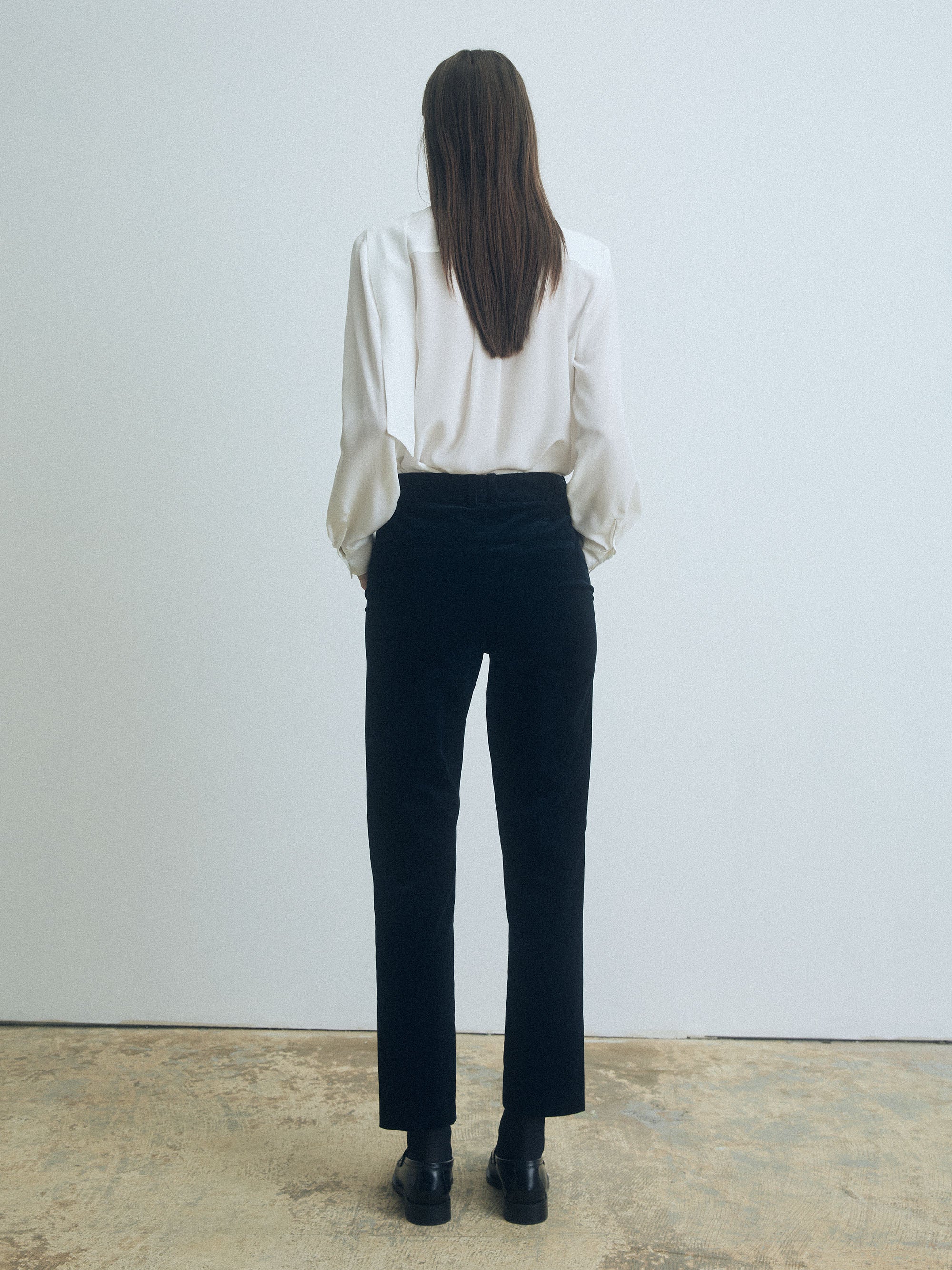 • Navy colored slim pant in unlined cotton stretch corduroy fabric by Judith & Charles