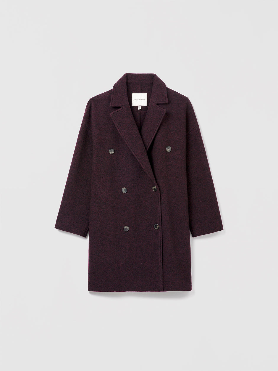 Double-breasted coat in virgin wool, made in Canada.