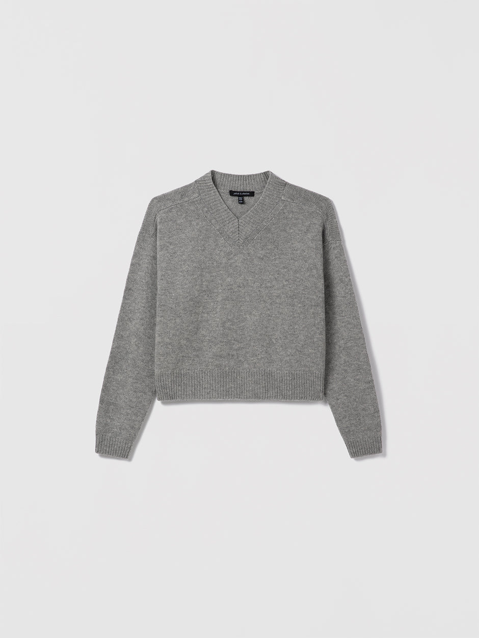 Long-sleeve high V-neck sweater in a wool-cashmere blend.