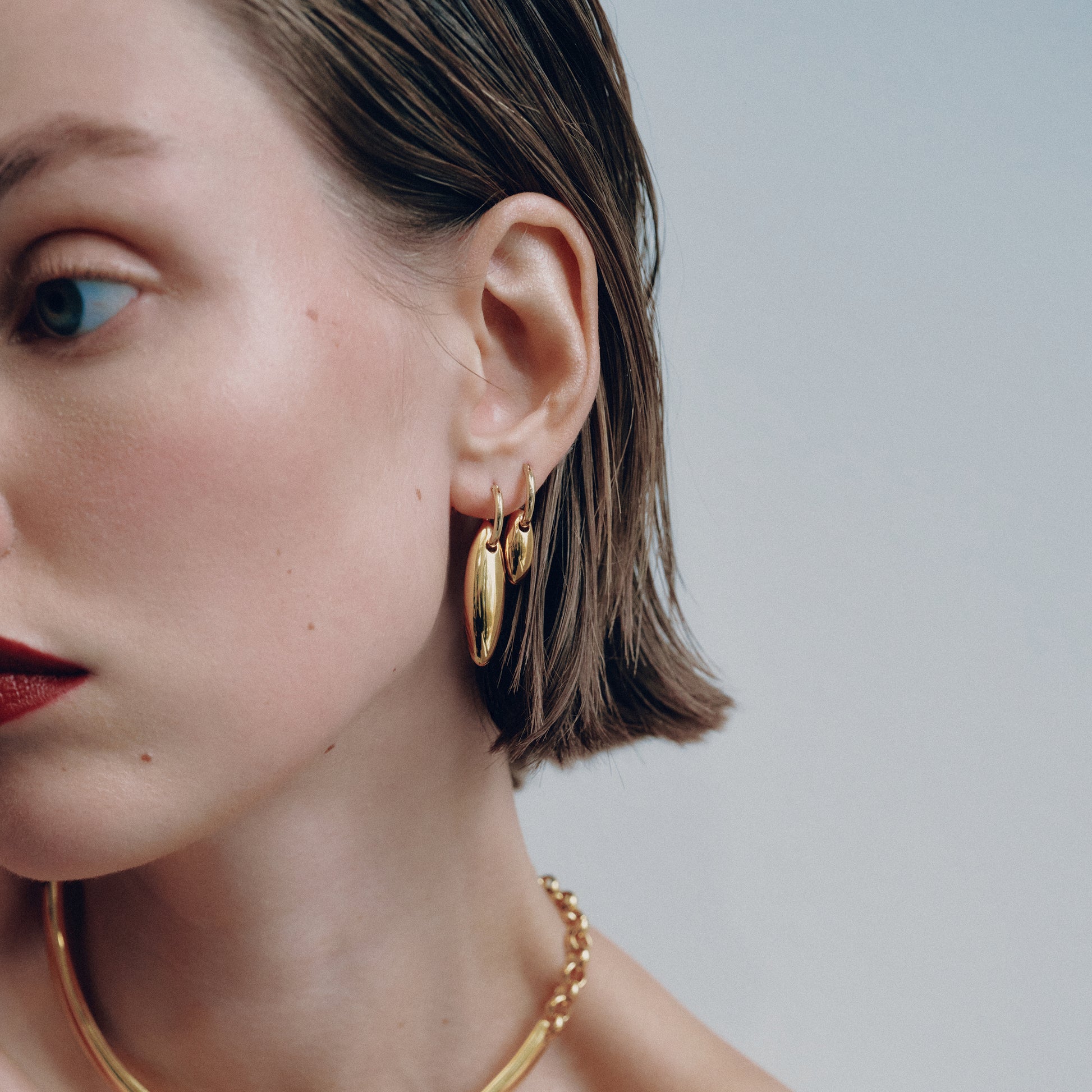 We love versatility. A hand-cast, polished-to-perfection sculptural charm hangs from the perfect mini hoop. Slide the charm off for a sleek solo look. 14k gold plating, hypoallergenic posts Hand-cast & polished forms 0.55" hoop diameter, 1.5" drop with charm Style: BK-W2509 Made with love in Toronto, Canada