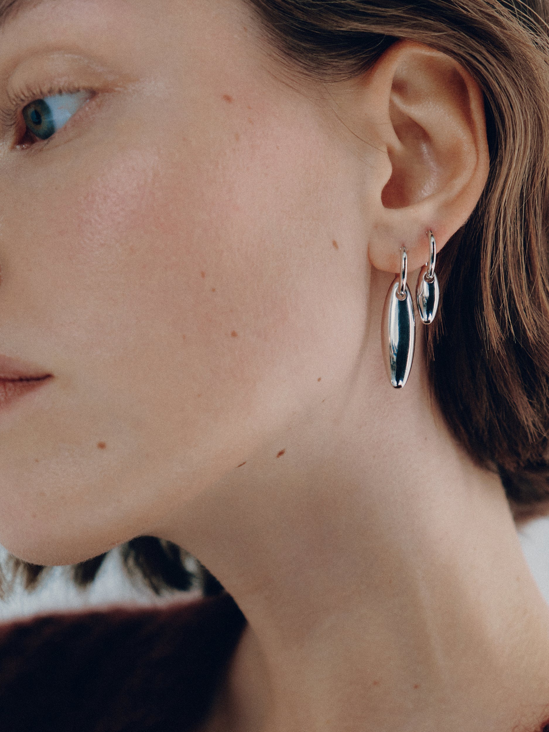 We love versatility. A hand-cast, polished-to-perfection sculptural charm hangs from the perfect mini hoop. Slide the charm off for a sleek solo look. Pictured on model in 1st piercing. Rhodium plating, hypoallergenic posts Hand-cast & polished forms 0.55" hoop diameter, 1.5" drop with charm Style: BK-W2510 Made with love in Toronto, Canada
