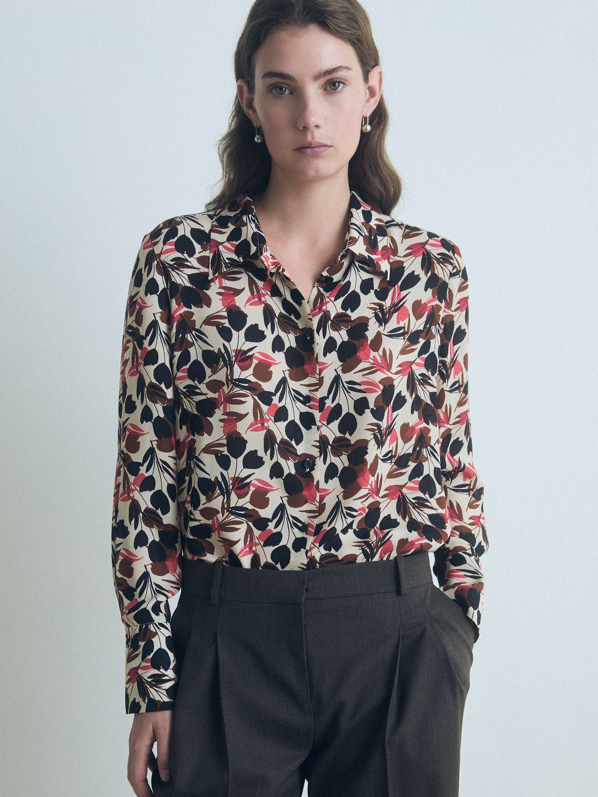 Silk blouse with a straight cut and lightweight feel.