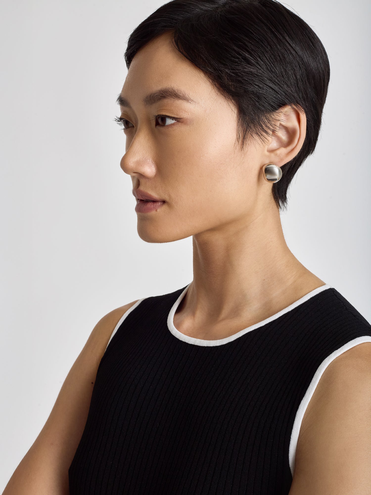 Sleeveless ribbed knit dress with a crew neck and relaxed skirt. Made from compact yarn in a midi length.