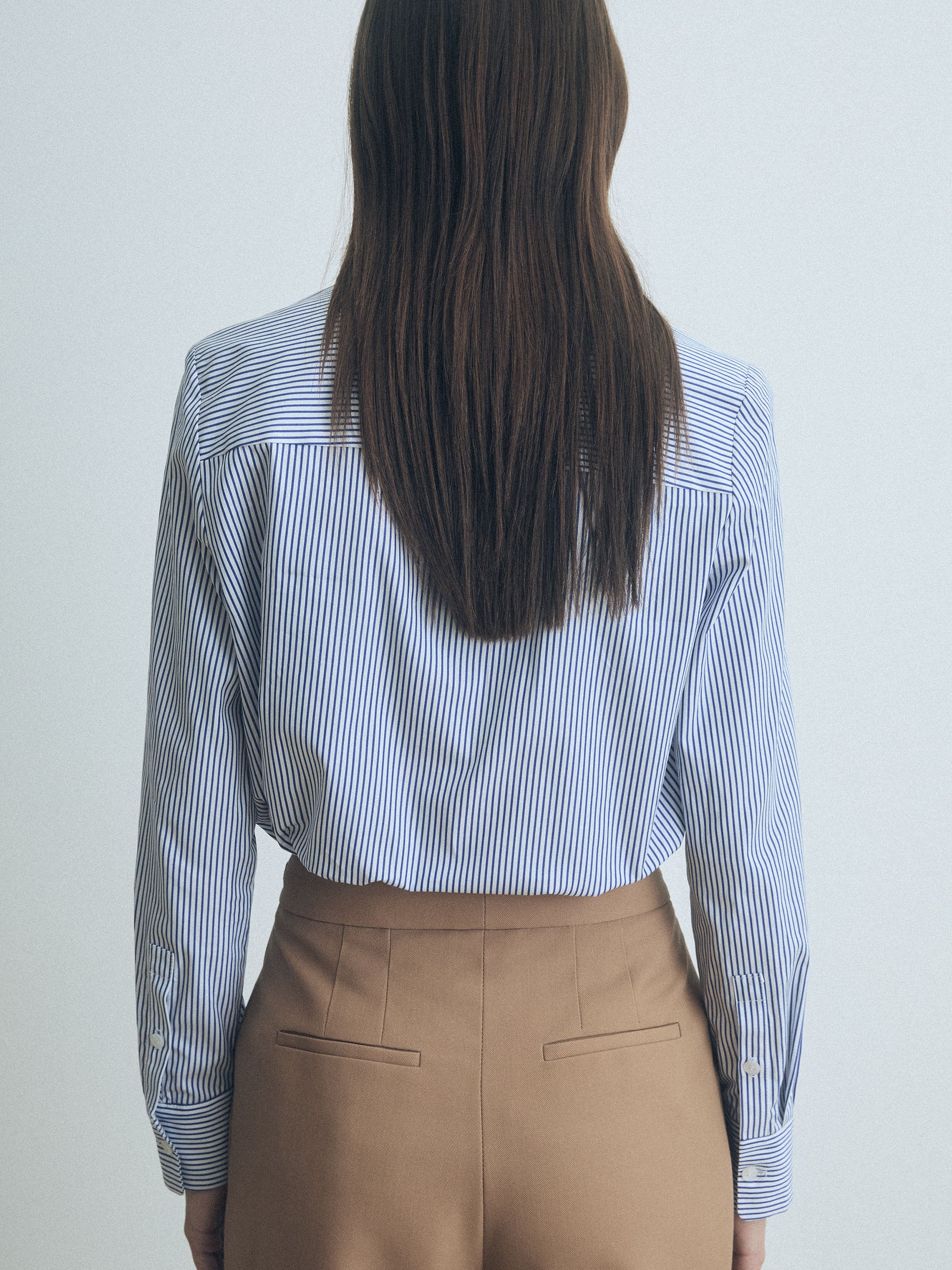 Long-sleeve striped cotton poplin shirt.