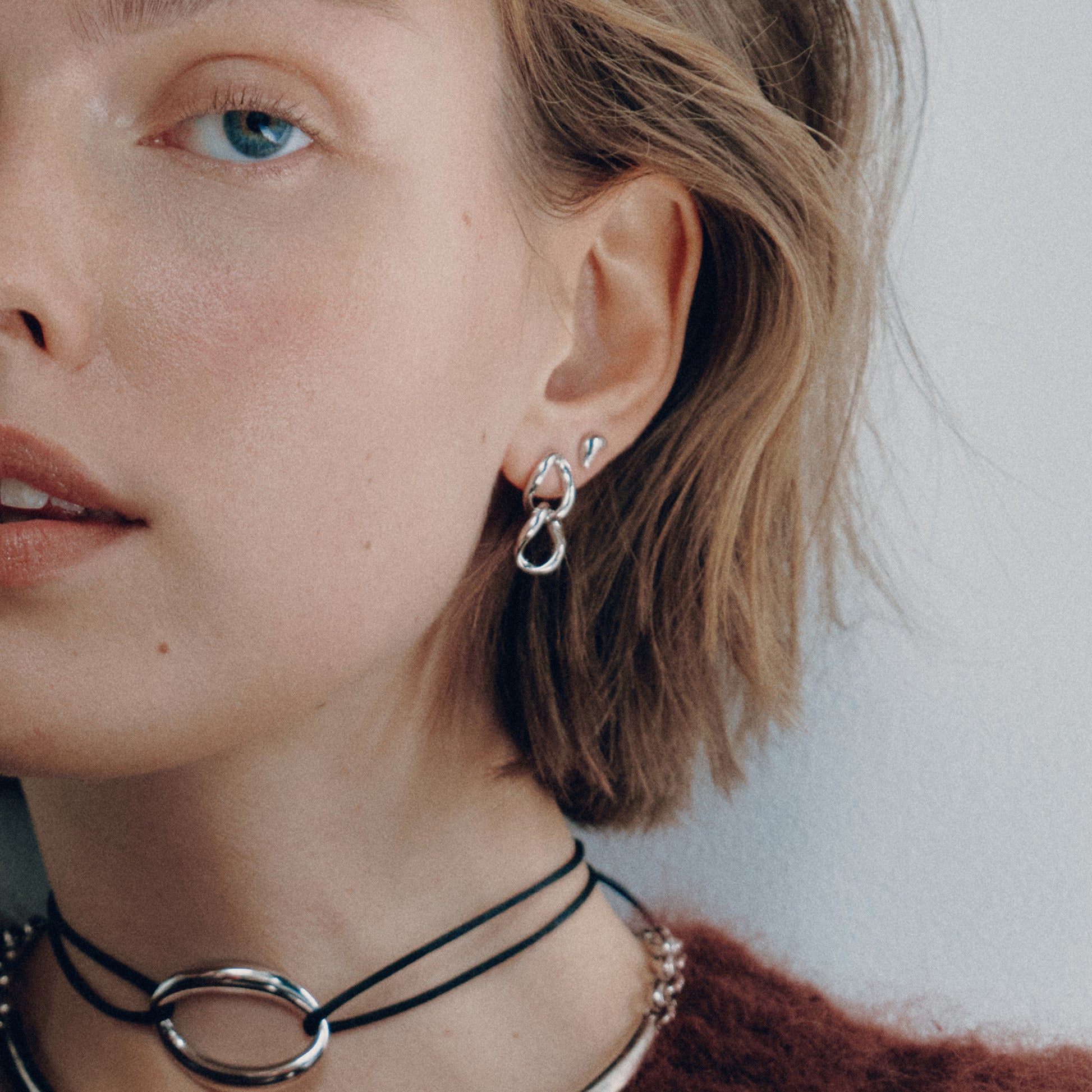 Meet your new everyday essentials. These mini double links are subtle but strong, effortlessly pulling your look together. Rhodium plating, hypoallergenic posts Hand-cast & polished forms 0.4" width, 0.9" drop Style: BK-W2507 Made with love in Toronto, Canada