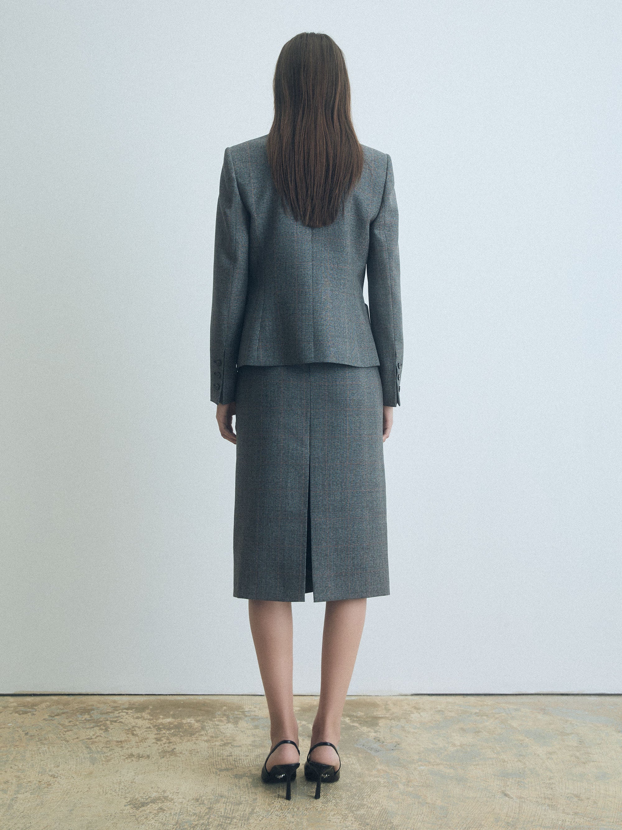 Pencil skirt in Prince of Wales check, crafted from pure virgin wool and fully lined in viscose.