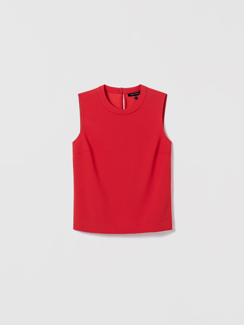 A clean sleeveless top cut in satin back crepe with a refined crew neckline. Finished with a discreet back keyhole.