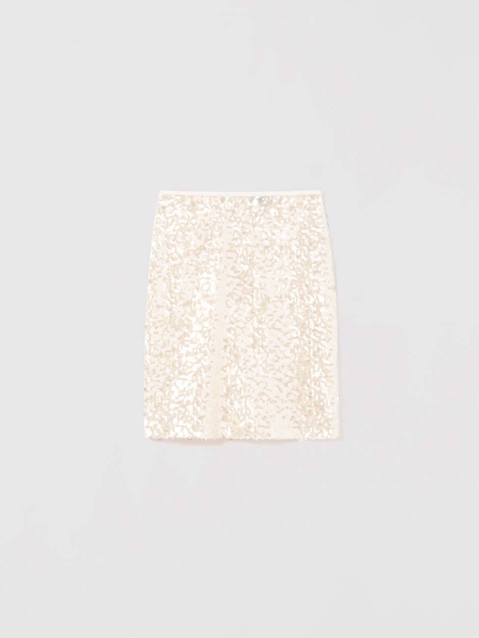 Straight skirt in modern sequins with clean waist and back slit. Made in Canada from Italian fabric with full polyester lining