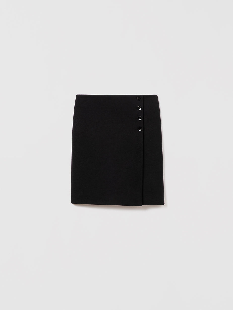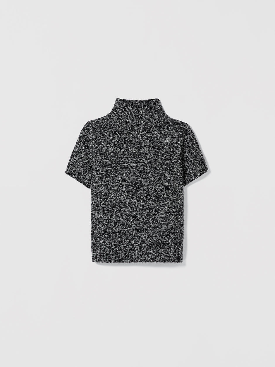 Fitted short sleeve mock neck sweater in extrafine Italian wool; fitted