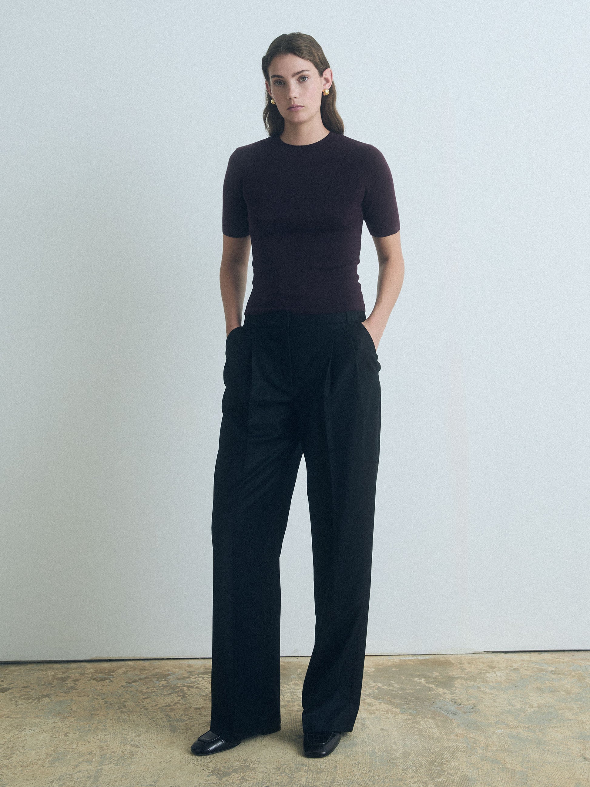 Short sleeve crew neck sweater in Extrafine merino Wool