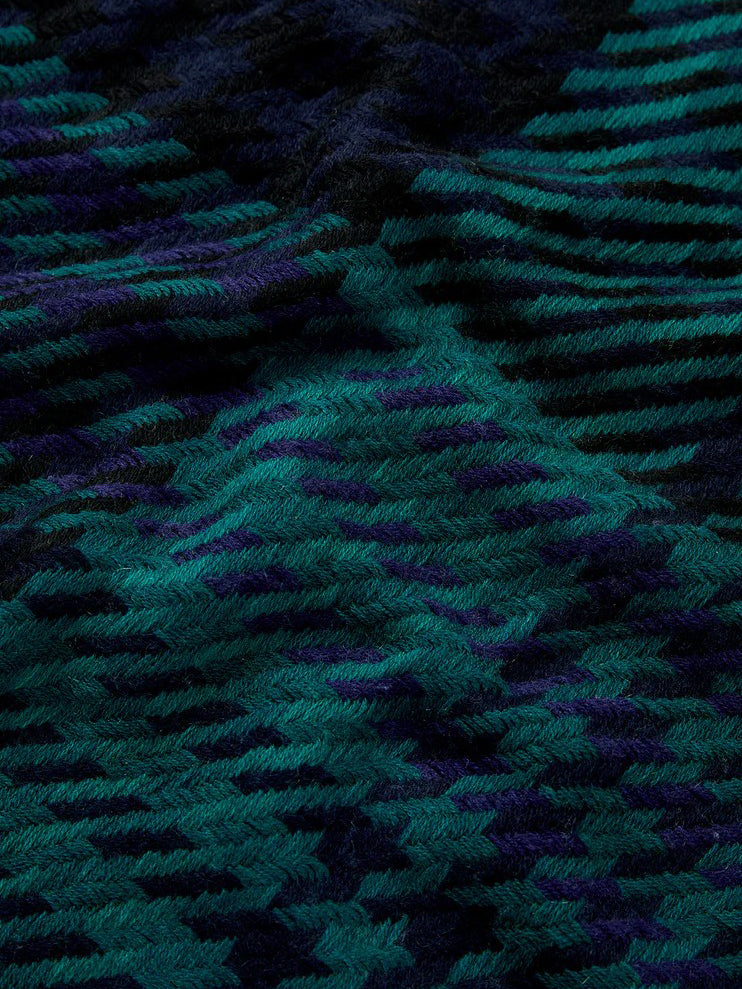This sumptuously soft square scarf is hand-woven in an oversized dogtooth check from a wool cashmere-blend. It has been designed in a graphic colour palette of navy, black, cream and white. A statement, enveloping style for cold-weather cosying. To ensure your scarves remain in the best condition, we recommend that you store them flat and untied in a dry place.